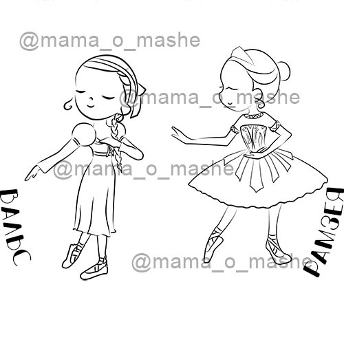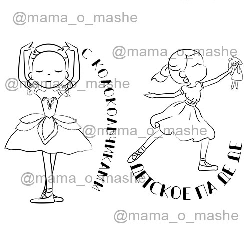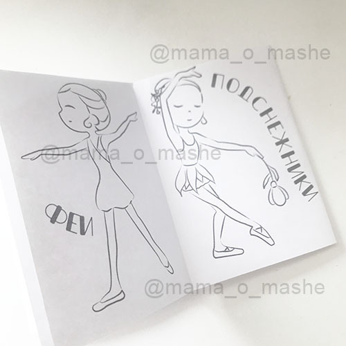 Шаблон нужно распечатать на листе А4. Раскраска была подготовлена к дебютному сольному выступлению Масяни и ее подруг из школы @lilballerine_spb, чтоб девочкам было на что отвлечься за сценой. Образы взяты из их сольных танцев.